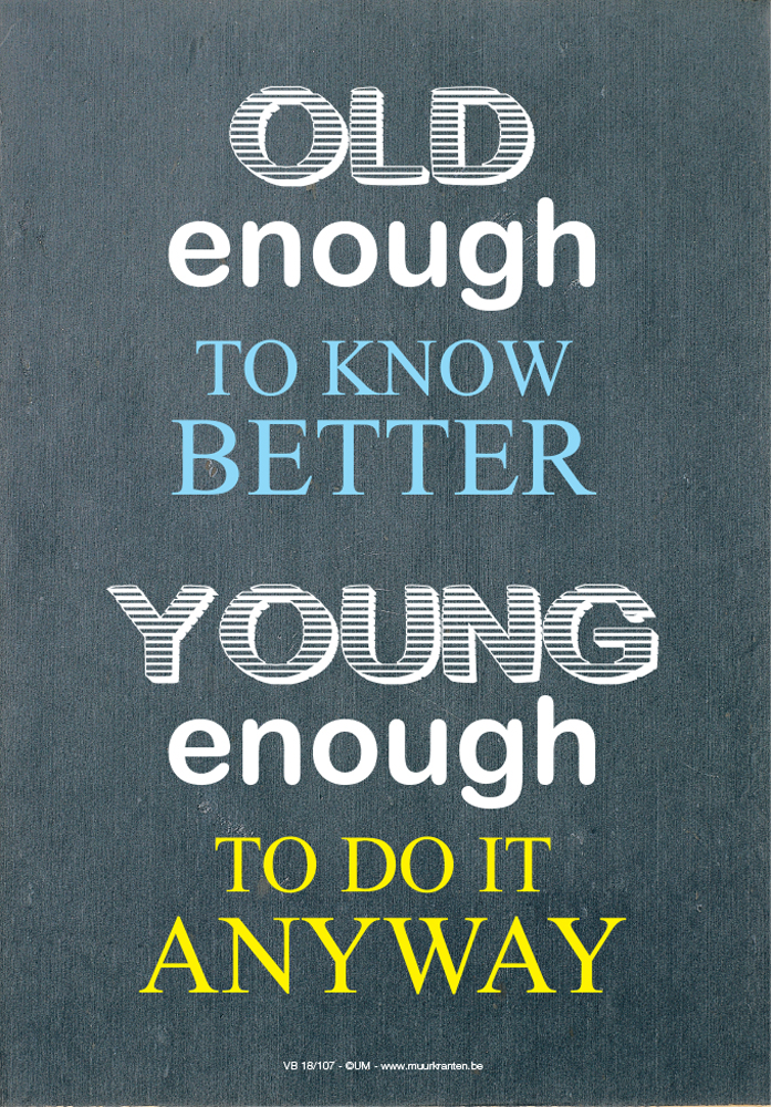 VERKEERSBORD "OLD ENOUGH-YOUNG ENOUGH"