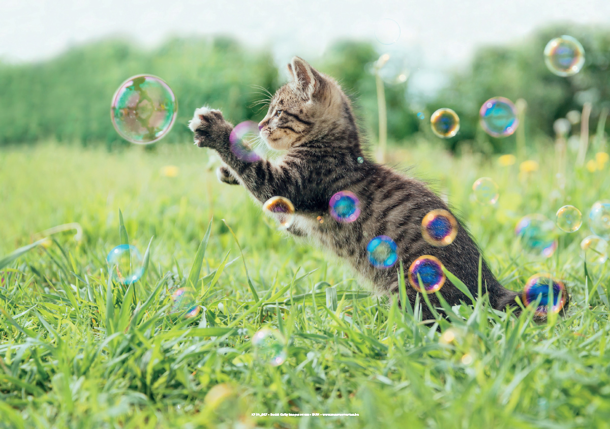 Spelend katje met zeepbellen