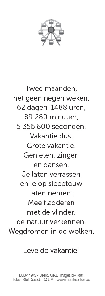 Info: Vakantiewensje tekst: Stef Desodt