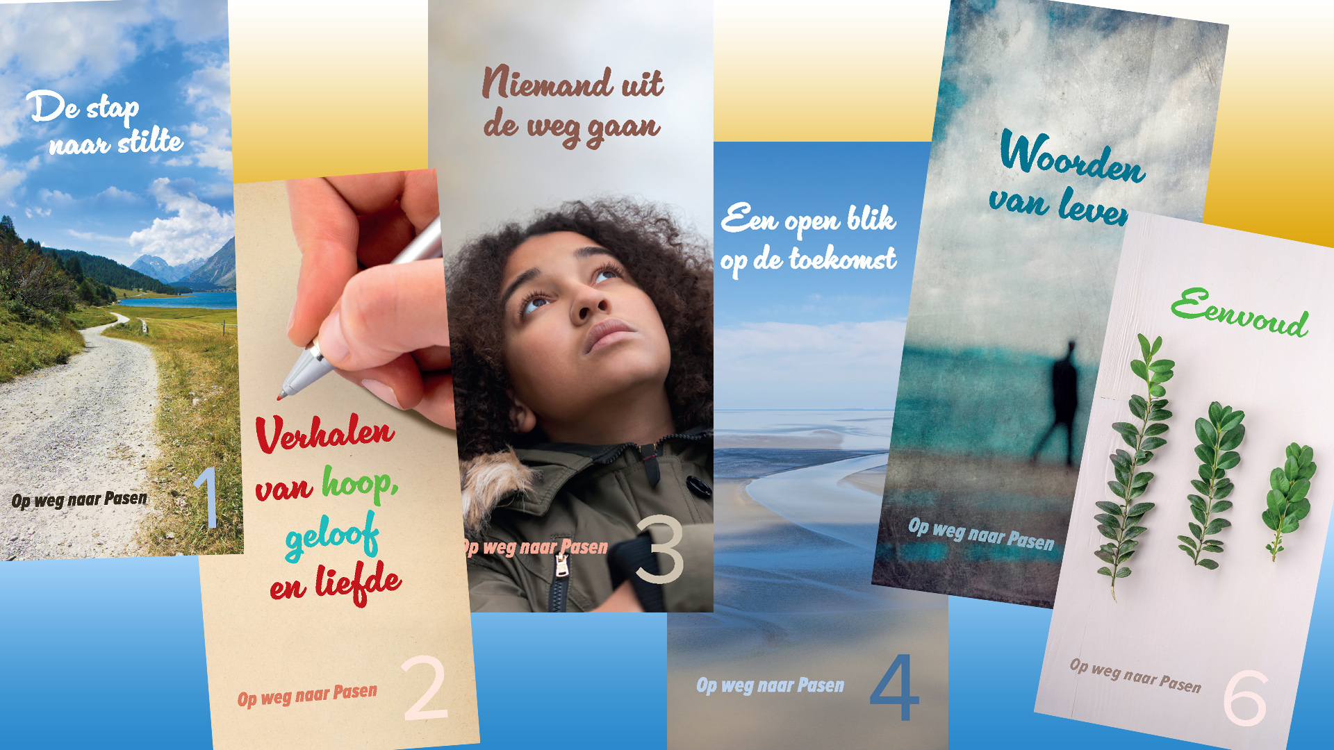 SET VAN 6 BLADWIJZERS - OP WEG NAAR PASEN