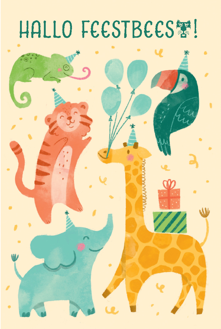 DUBBELKAART "HALLO FEESTBEEST"/OMSLAG