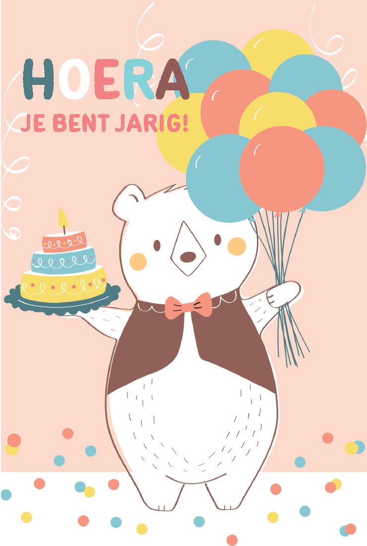 DUBBELKAART "HOERA JE BENT JARIG!"/OMSLAG