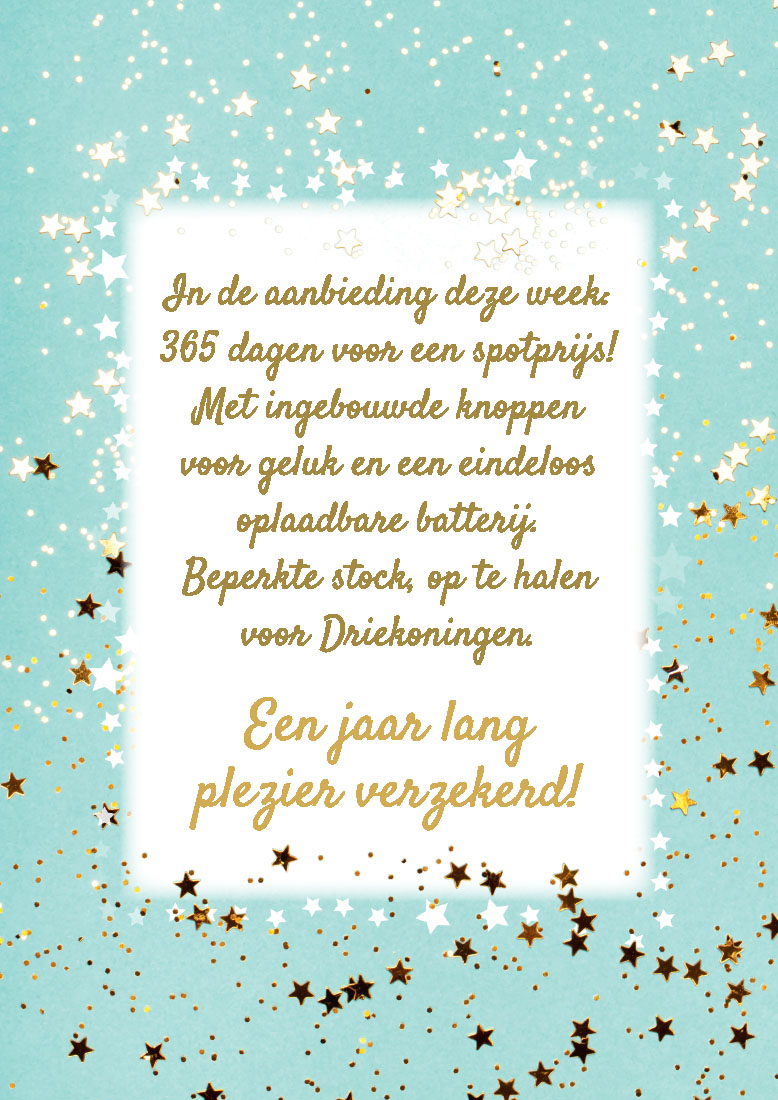 ENKELKAART "EEN JAAR LANG PLEZIER VERZEKERD!"/OMSLAG