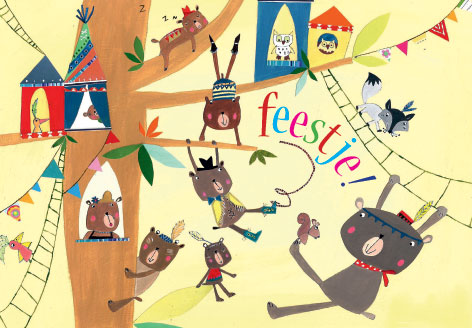 ENKELKAART "FEESTJE" + OMSLAG